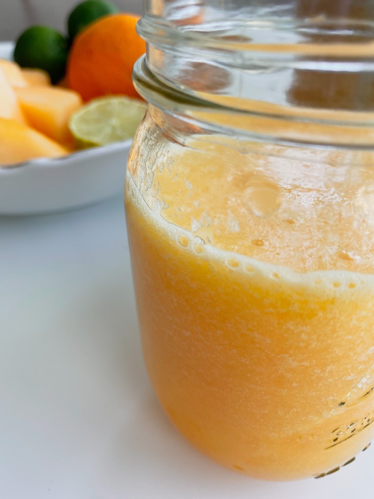 This drink is a riff on a traditional Persian drink usually made in the summer when cantaloupes and other melons are at their sweetest prime. The traditional version is made with cantaloupe juice and sugar, but this version eliminates the sugar, balances out the sweetness of the cantaloupe with the tartness of orange and lime juice, while the addition of ginger gives it its kick. So make a pitcher and stay cool!