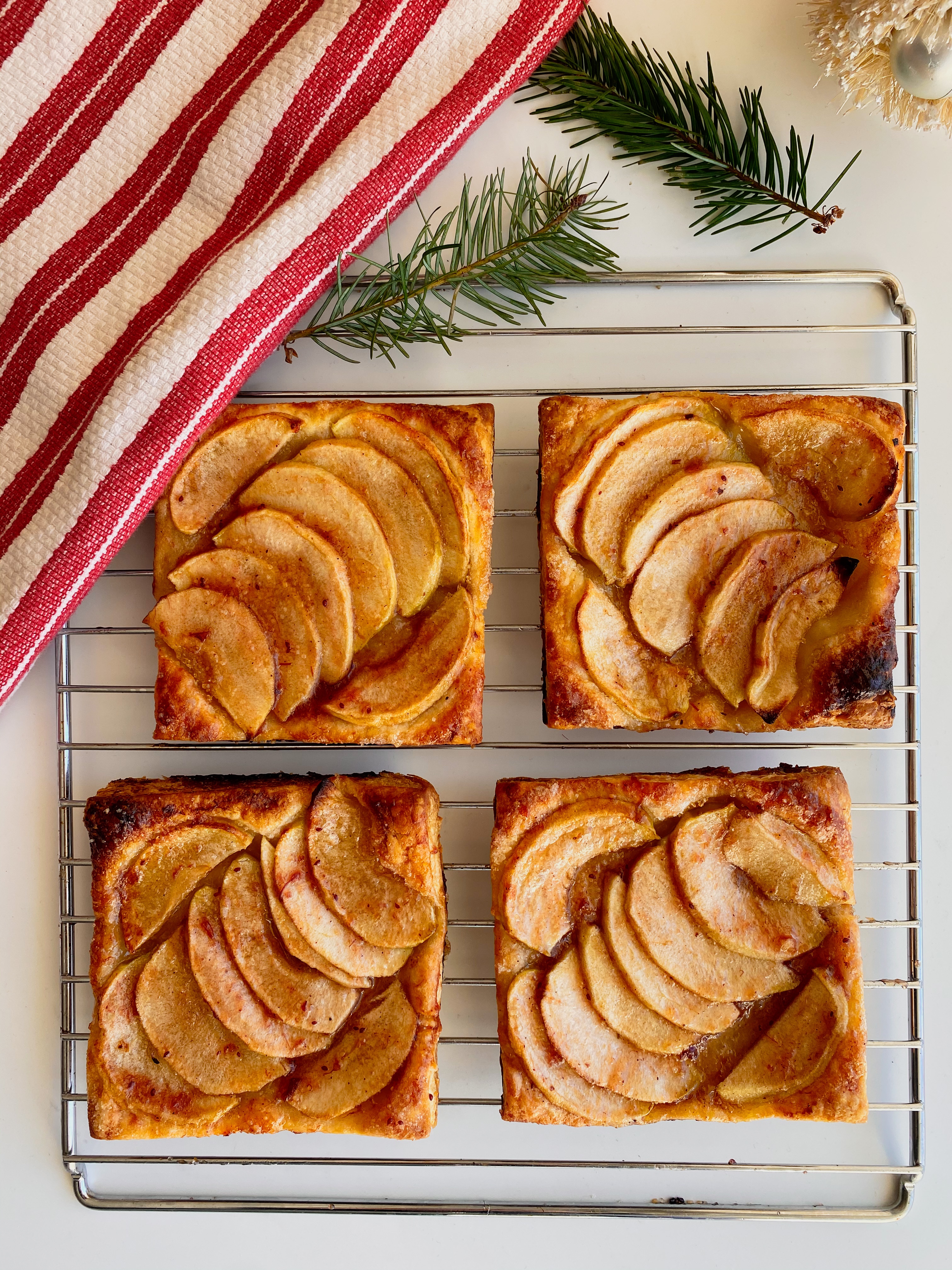3. Warm up the jam with the water in a small saucepan over medium-low or medium heat until it begins to simmer (you’re just softening up the jam here). Remove from the heat. Brush the apples with the jam/water mixture while the tarts are still warm (you may not need to use it all). Allow to cool, and serve.